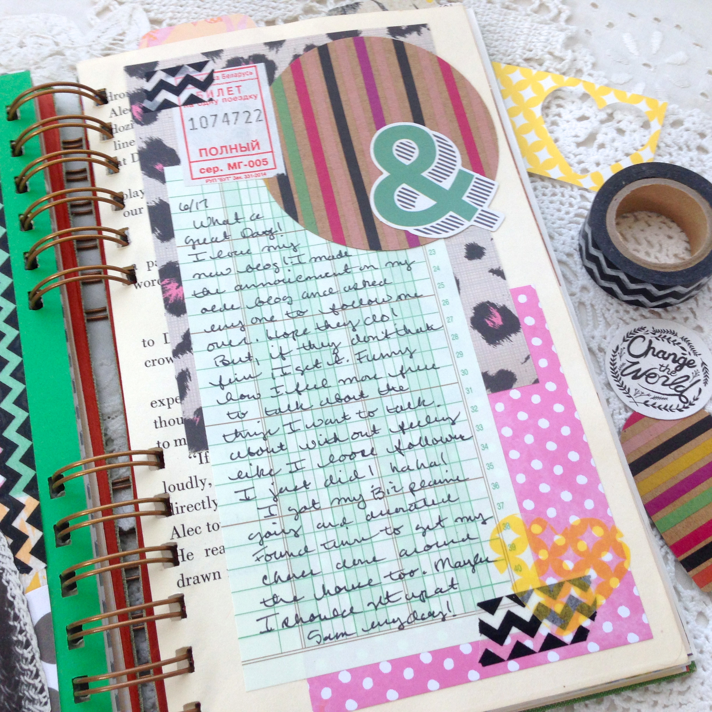 …in the the form of journaling. I have been adding ready made ephemera, lots of washi tape, and scrap paper to my pages lately, a habit I’ve picked up from working in my list challenge journals.