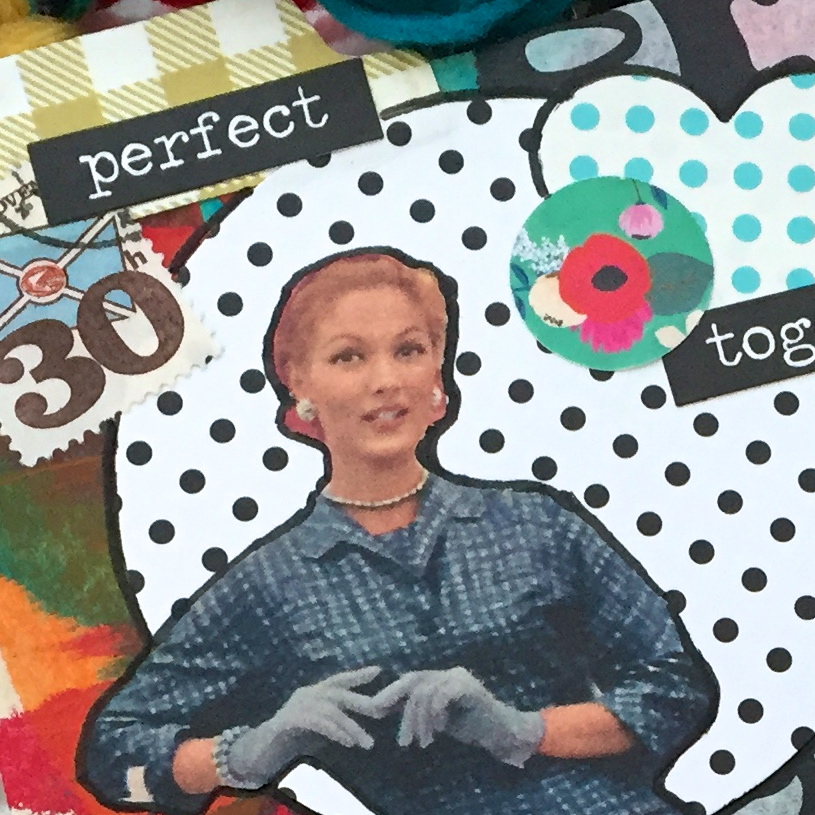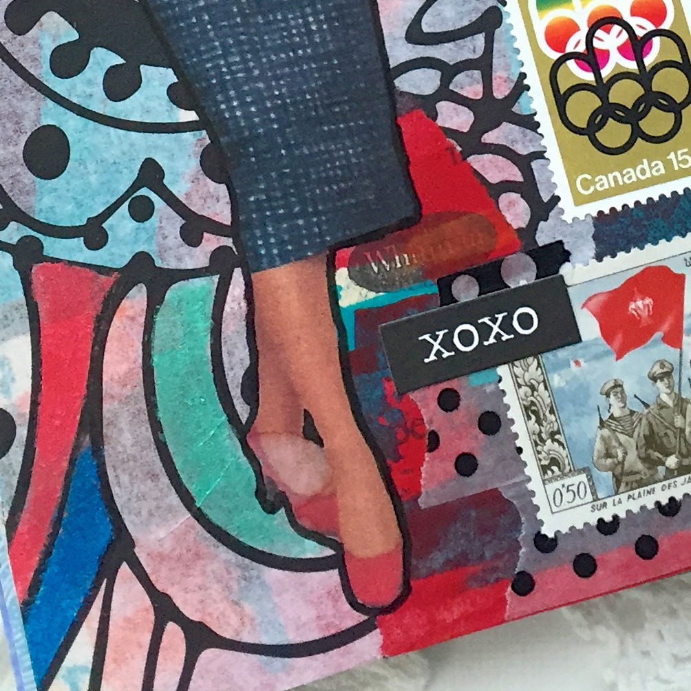 Die cuts, fussy cut image, postage stamps, washi tape, and stickers.