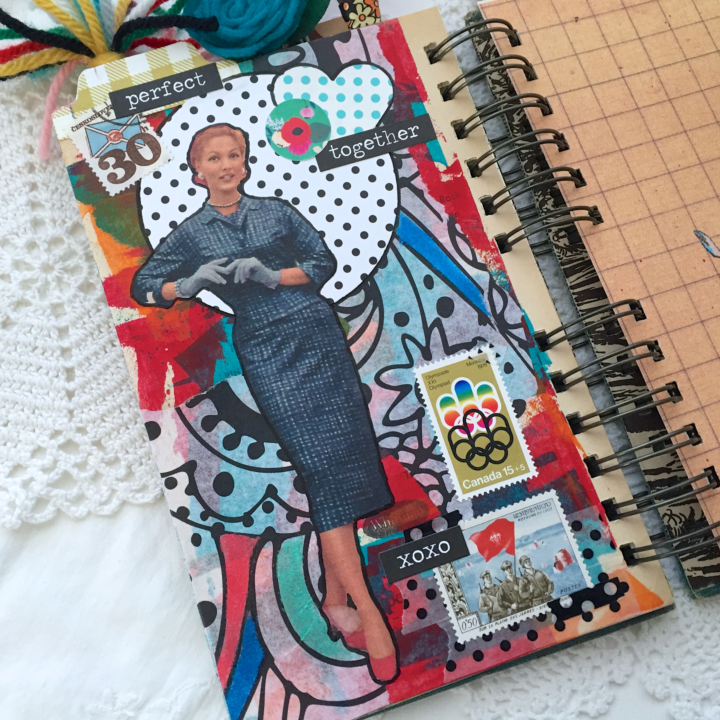 This is a journal that was a little too rough around the edges for my shoppe, so I pulled it out. The colors and themes in it are what I would call “Retro Eclectic”, in other words: challengingly (is that a word?) fun!