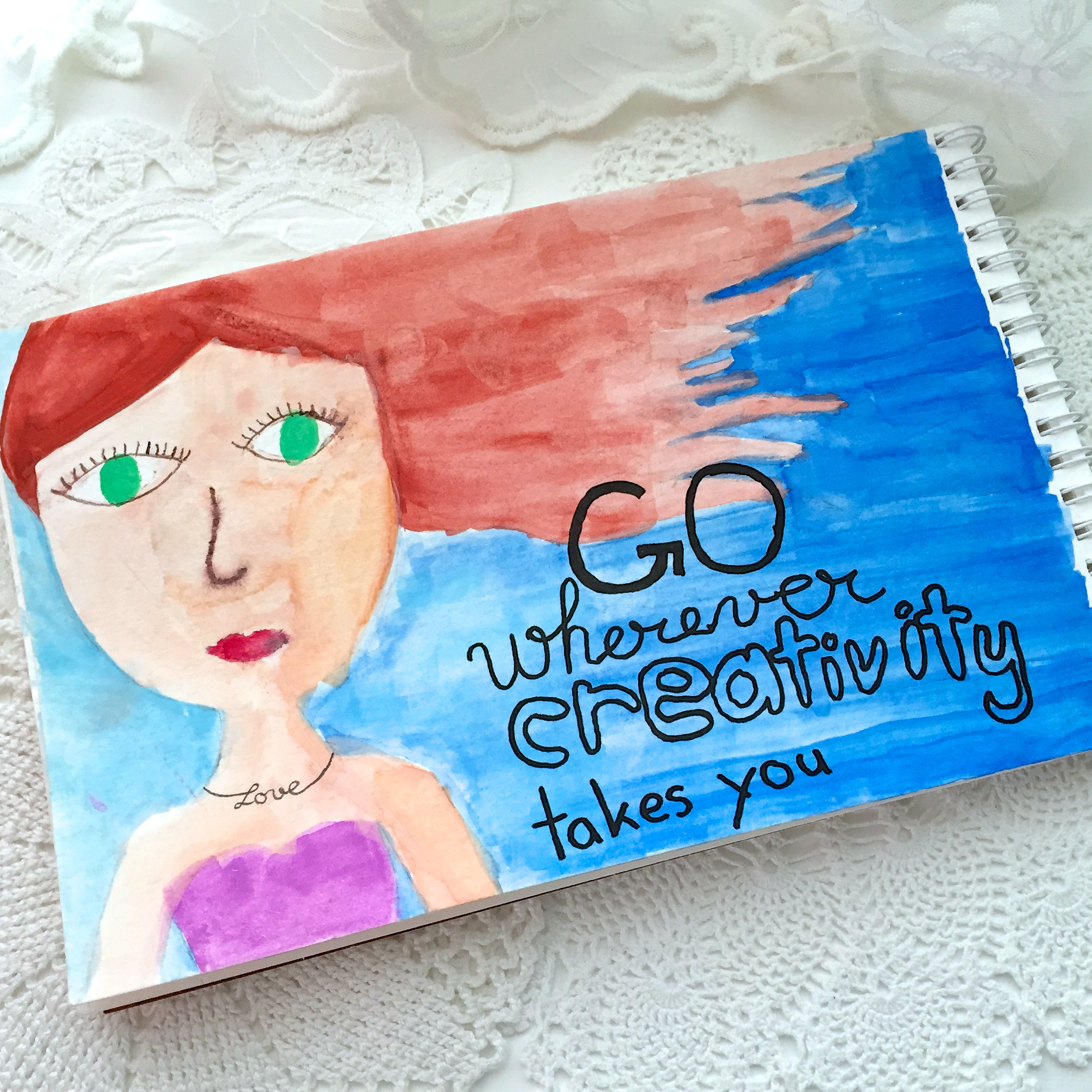 We watched a video on watercoloring and this is what she came up with. I love that neckless, and that quote…she amazes me! Seriuously, I couldn’t write that with a pen let alone with a paint brush!