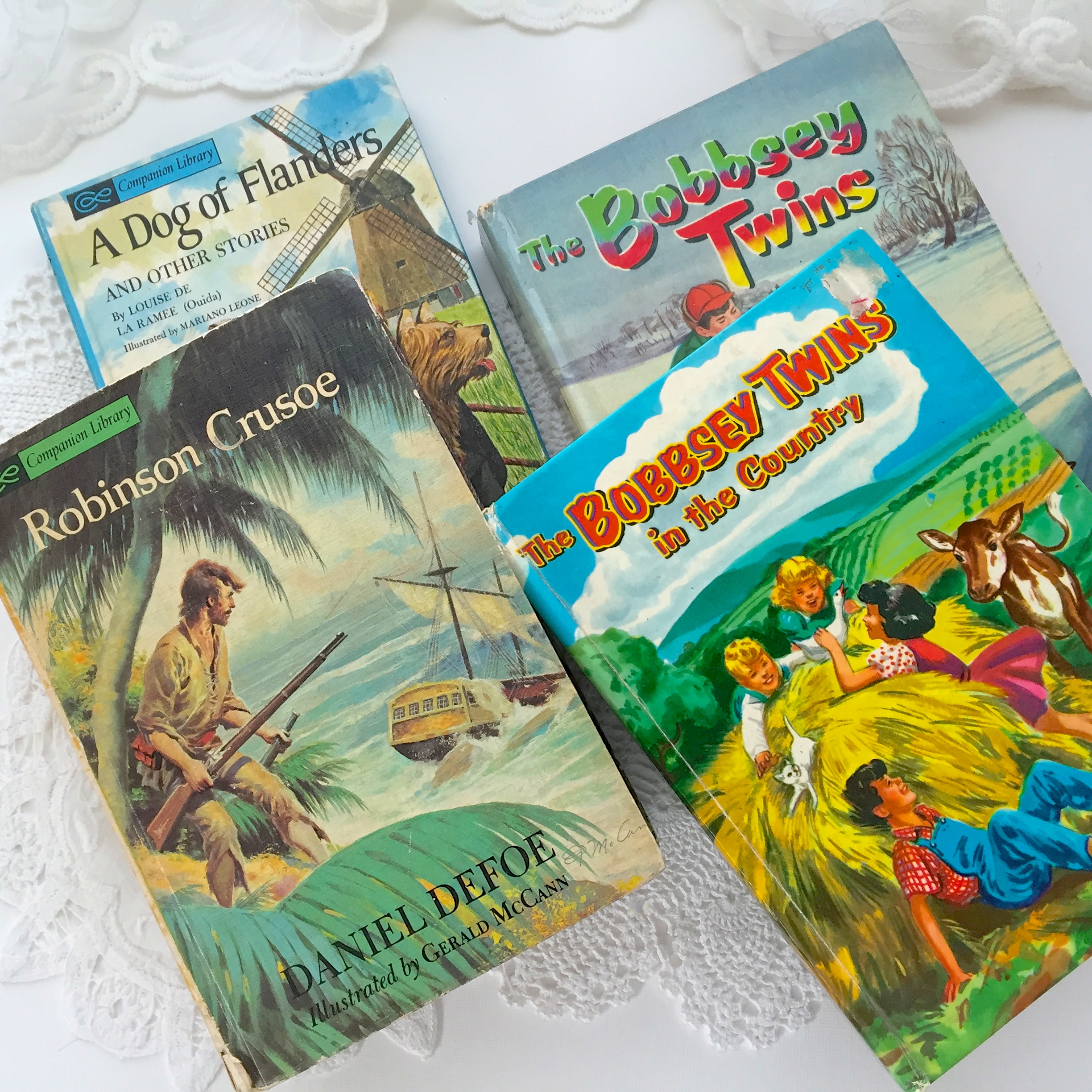 A collection of mid-century chapter books for the shop. I love those “Bobbsey Twins” books the most. I can’t wait to make them into journals!