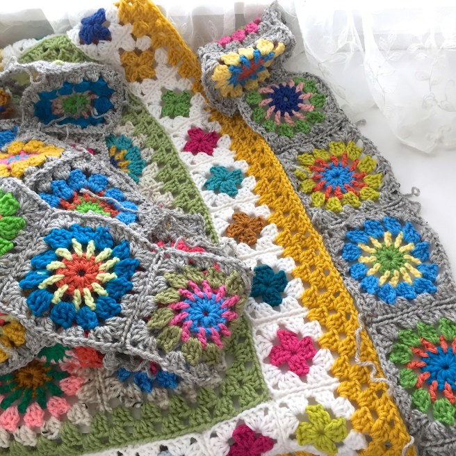 I love the typewriter! I remember writing reports for school using one of those!! The granny blanket is gorgeous! 😀