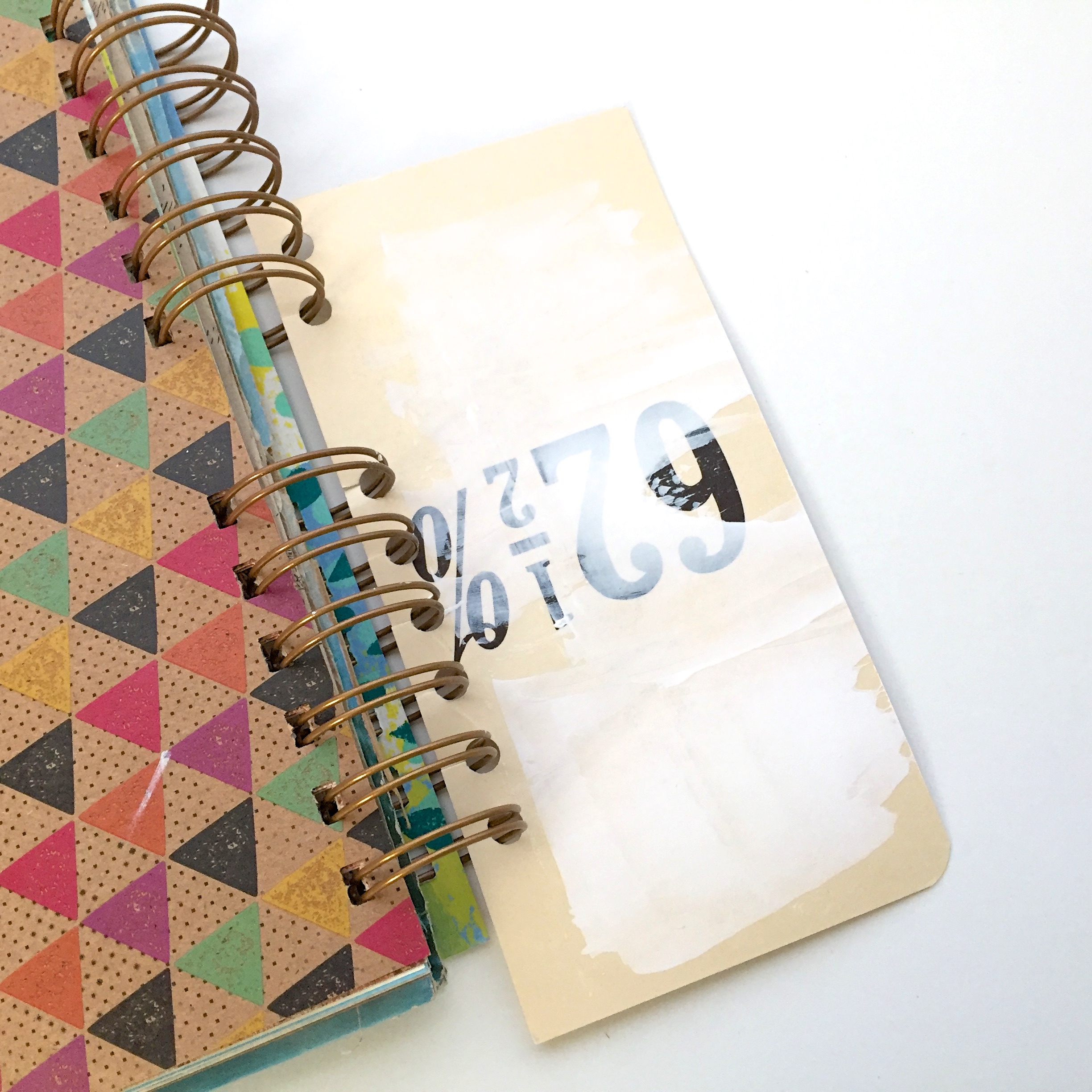 Because most people don’t have a Zutter binding machine, and I suck at lining things like this up, I used a regular old hole punch and a pair of scissors to pop this card into my journal. You just punch the holes accordingly, then snip along the edge, and pop it into your journal.