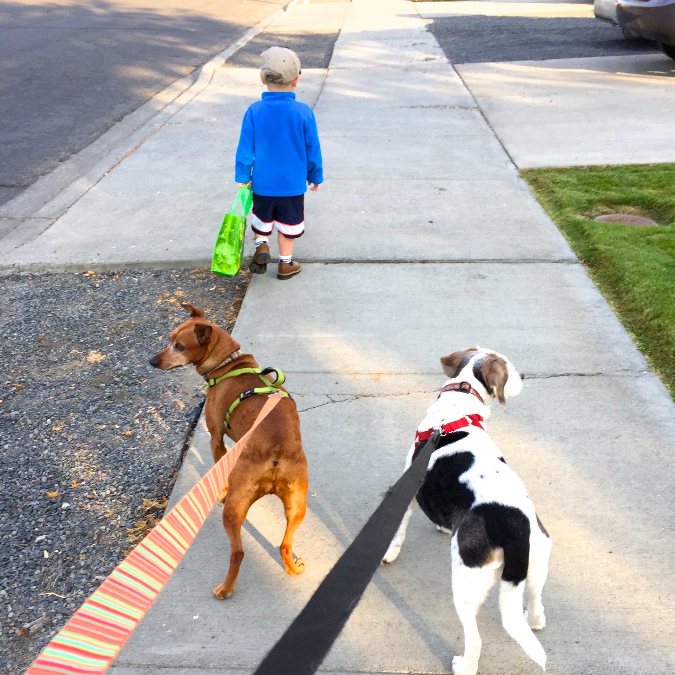 Case in point: Dog on the left-1000 mph, dog on the right-5 mph, toddler in the lead-whatever direction or speed strikes his fancy. This has been my life lately! I don’t see things changing much in the future, I just see it with new eyes and a grateful heart.