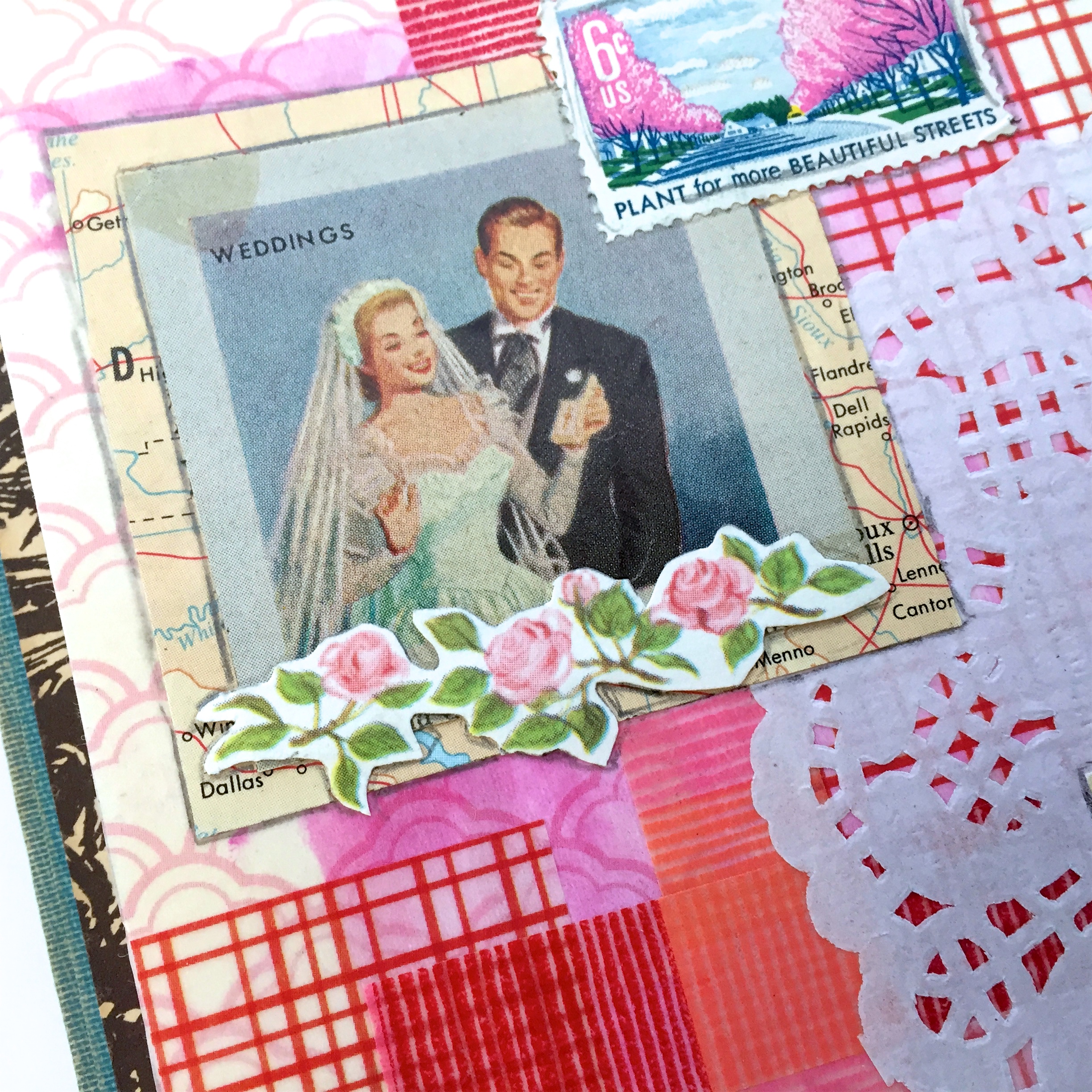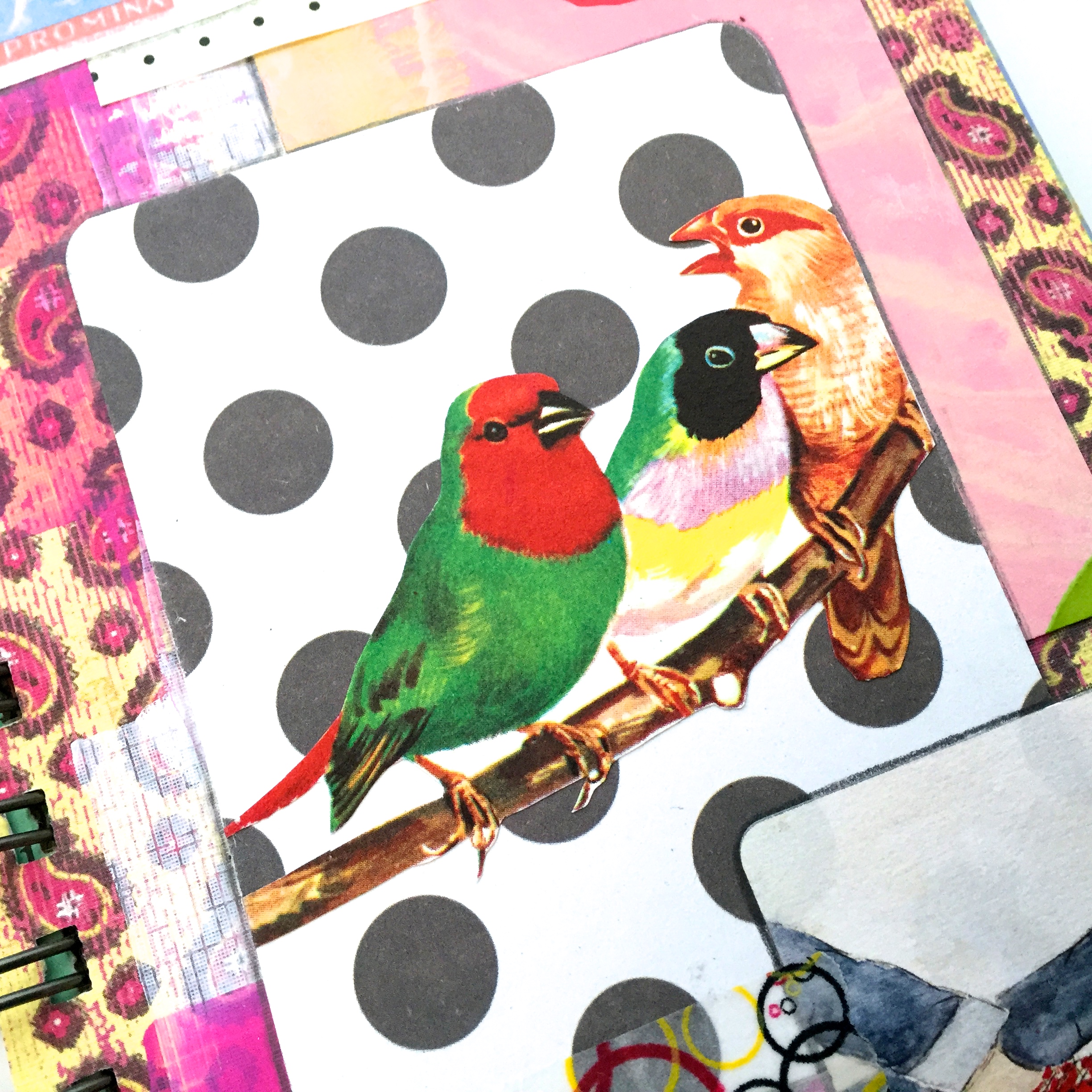 Although, I did share this one, I didn’t say much about it. Cutting out images and giving them a new background is one of my favorite techniques. Polka dots and colorful birds, love it!