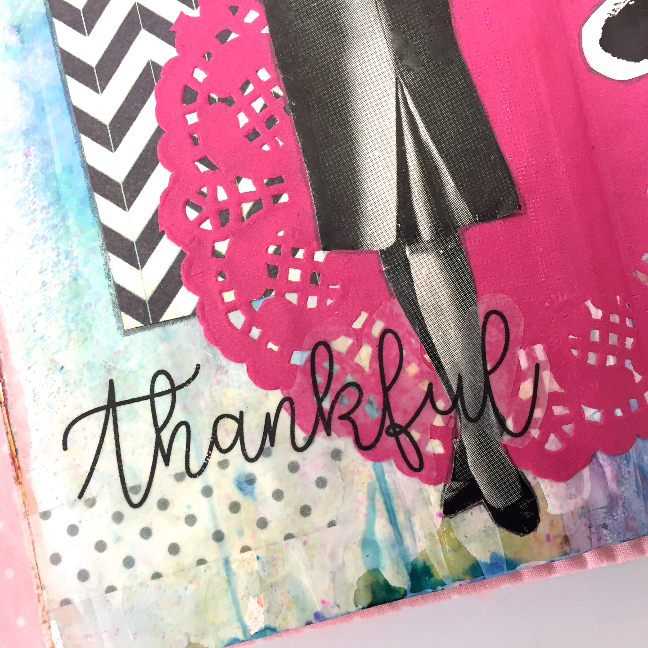 I have about 30 of these words to choose from in my arsenal now. Another benefit of having these words printed out is that I can move the word around the page to see where it will work the best before committing to where it will land. I’m not always very good at judging how big or small my writing should be to fit on the page or around an image.