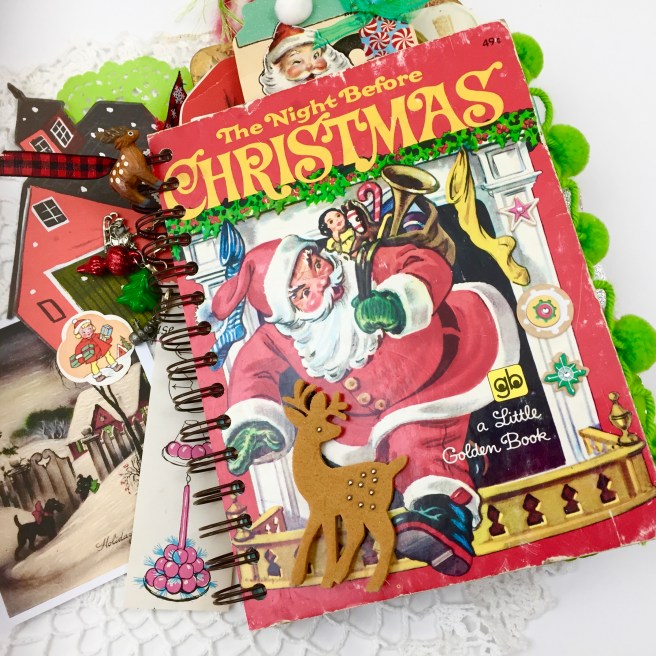 This is an envelope that was filled with Christmas treasures from a friend I’ve swapped with for years, a perfect place to put this beautiful mixed media card another friend made me.