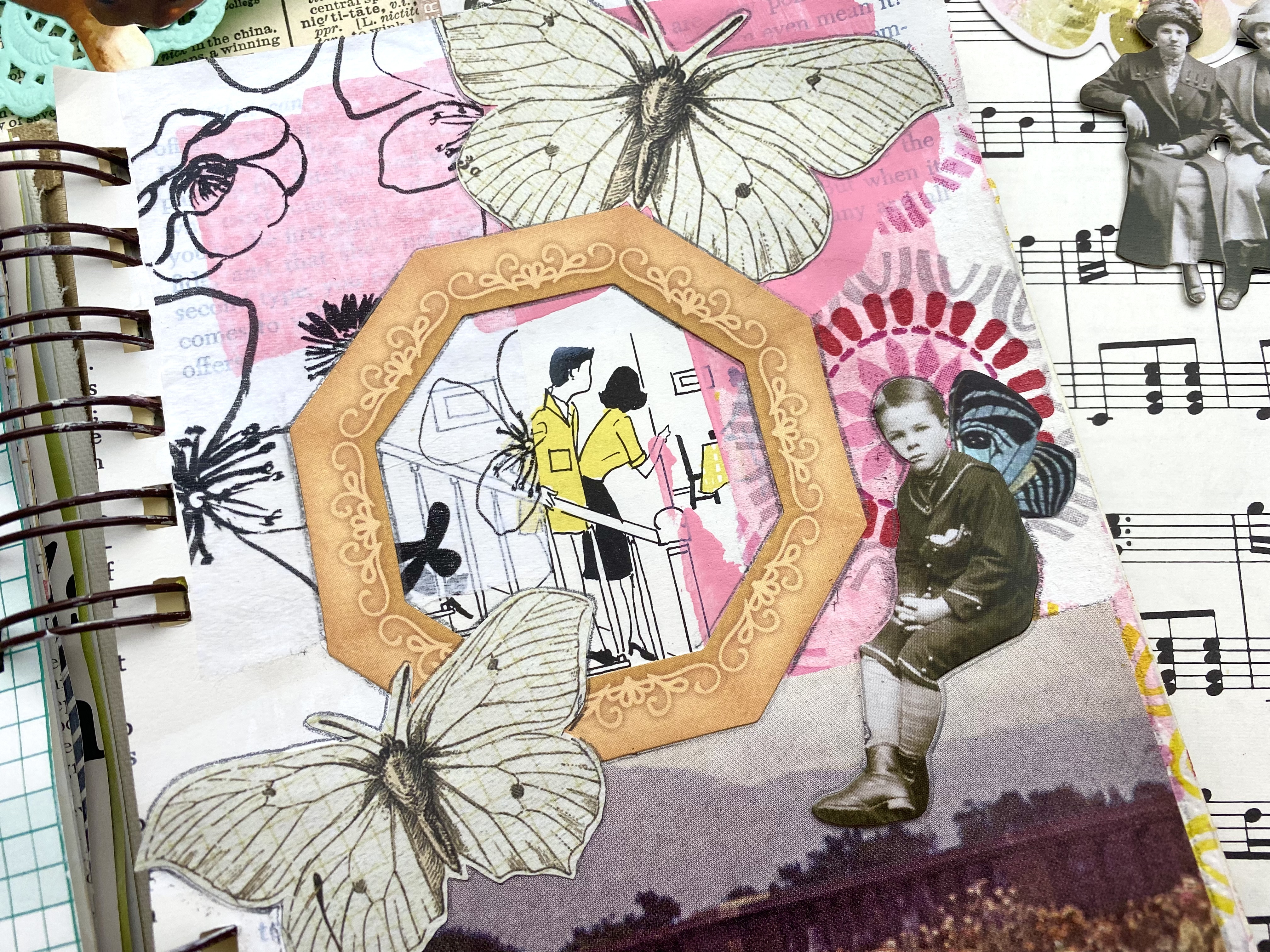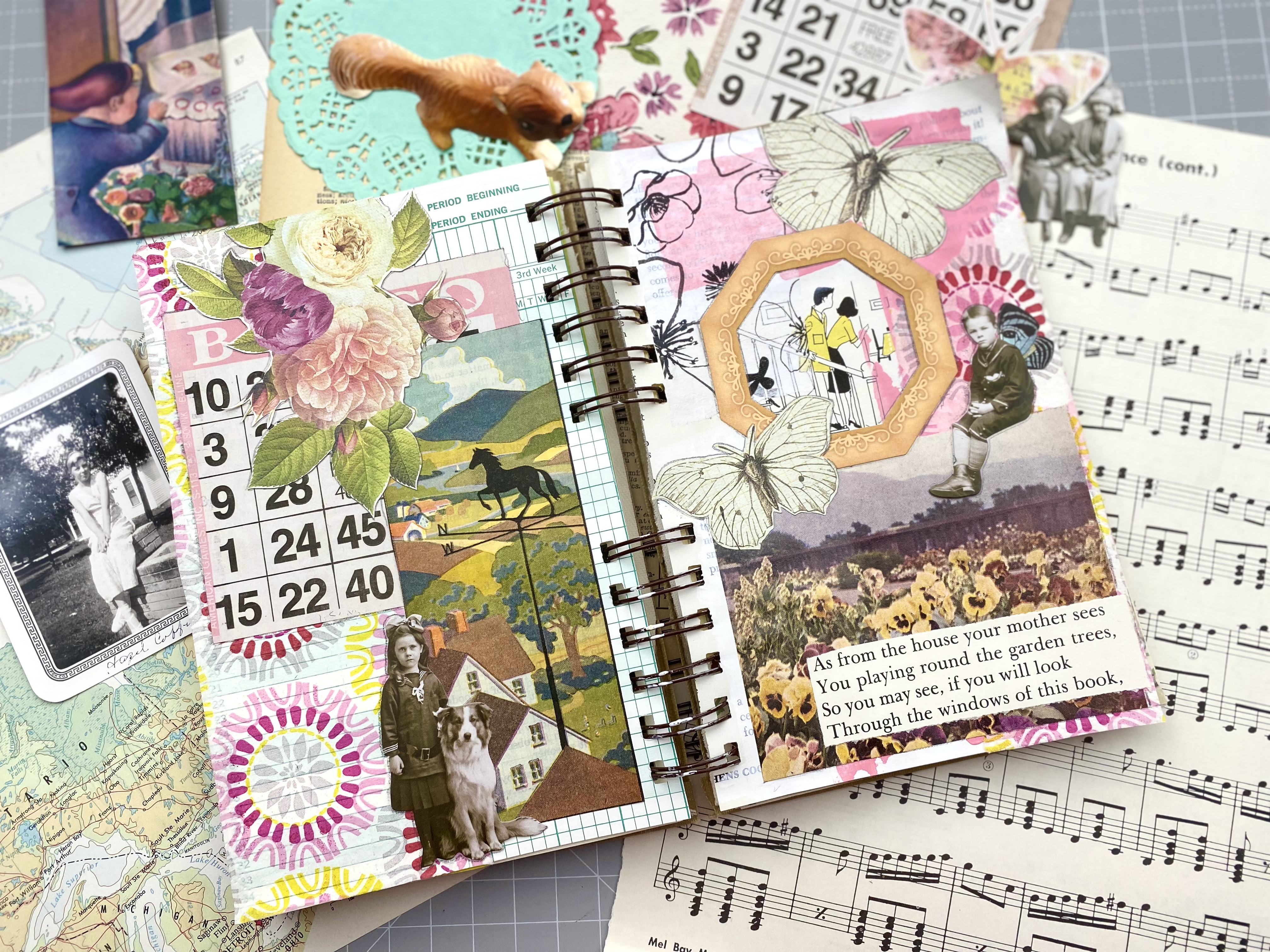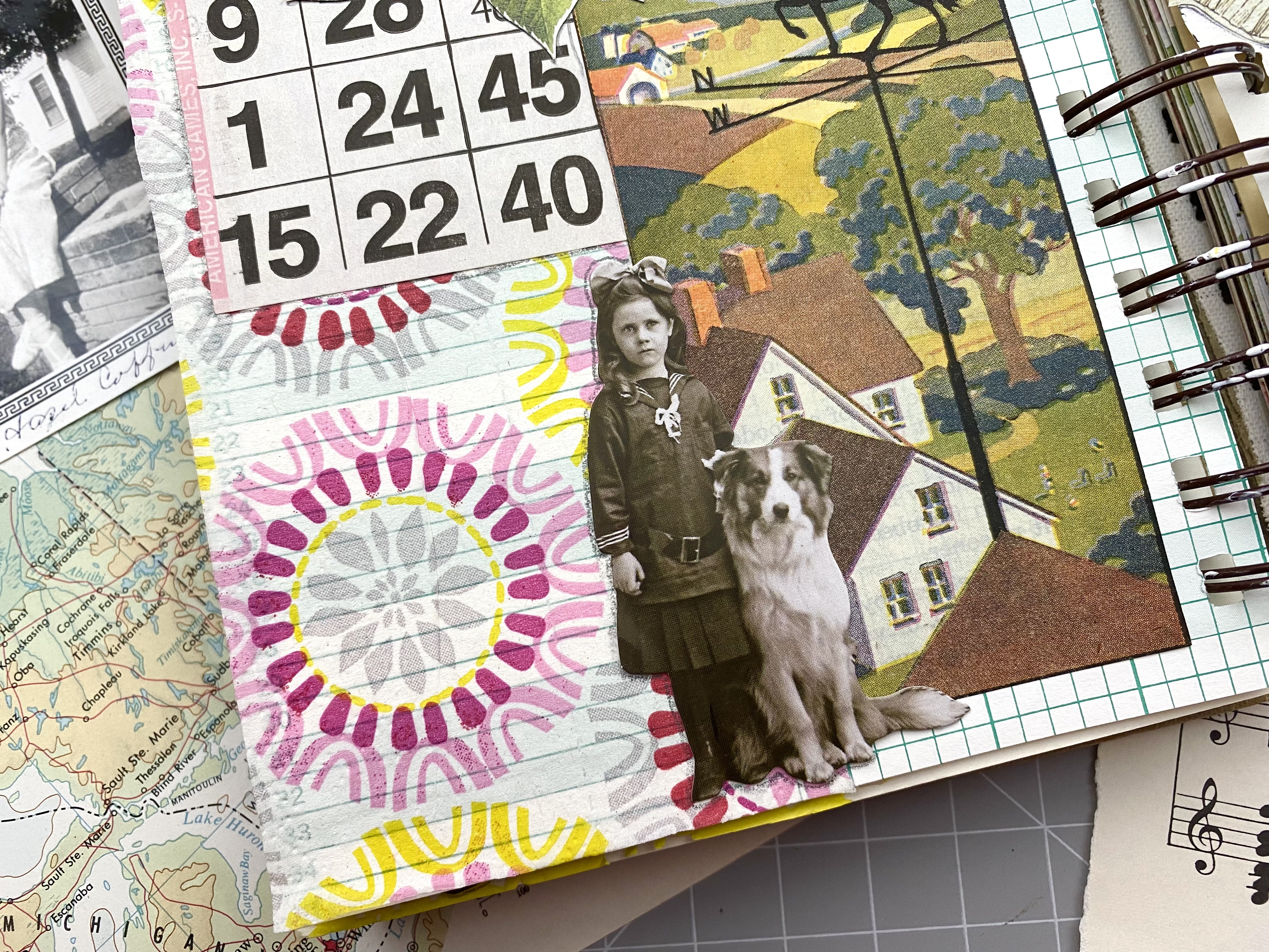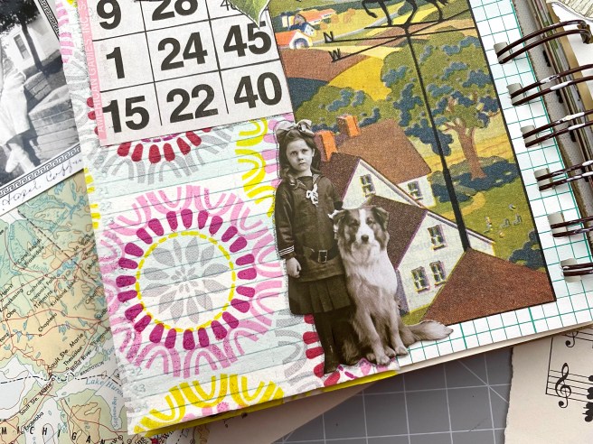 I found a fews minutes to pull out my little “A Cottage For Betsy” journal for some playtime, this is probably the best page spread I’ve done in here yet.