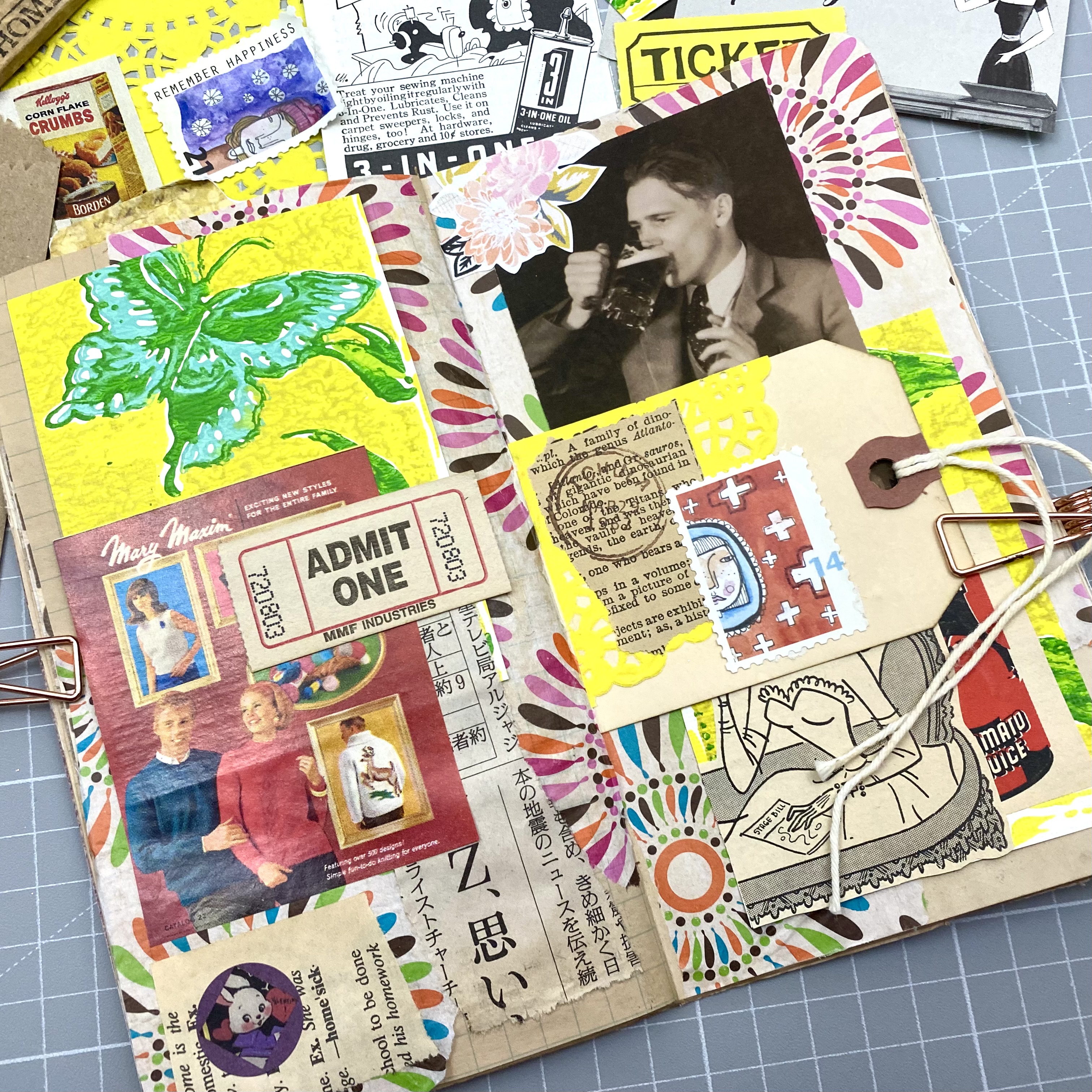 All of these prompts are an opportunity to stretch your creativity. It seems like everyone had a different interpretation of “Throwback”. Mine was at first a throwback to my younger self and different things I’ve owned and used in my art journaling almost from the beginning…including that old photo of my Grandmother’s friend “throwing back” a beer. Lol!