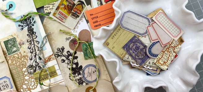 Lately, I have been slightly obsessed with making small “art pieces” for my journals. It started with tags of course, but I thought it would be fun to make small pieces on background paper too.