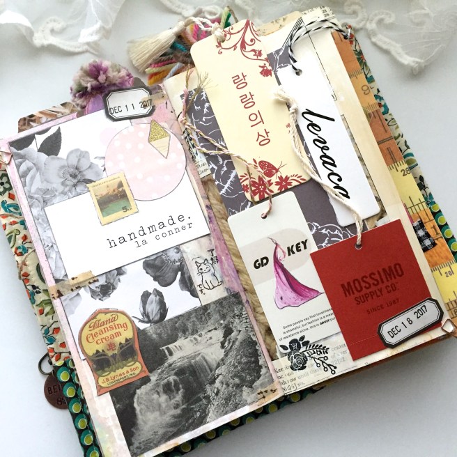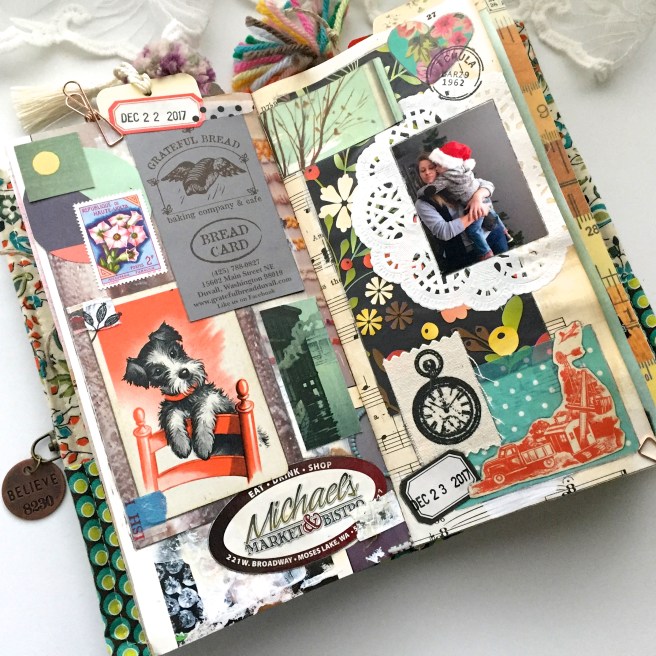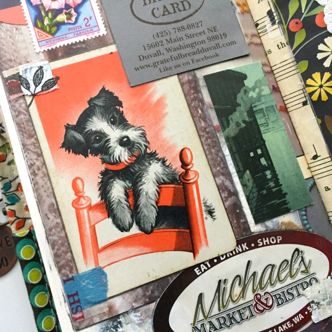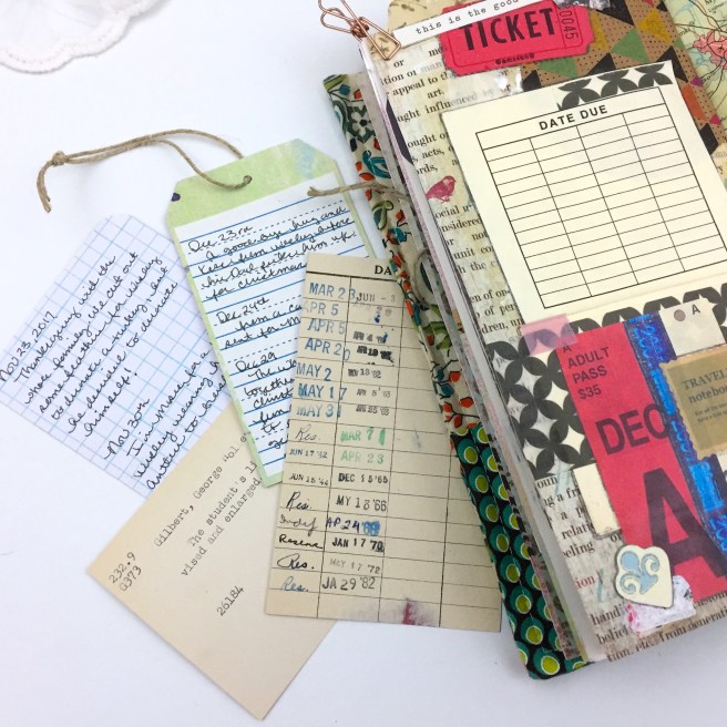 Because I had put this project on the back burner, it was a bit tricky coming up with some of these fun bits and bobs to art journal with, but I found a few things tucked around my art space. As I run across things, I paperclip them into this insert on the corresponding date, then jot down a note or two.