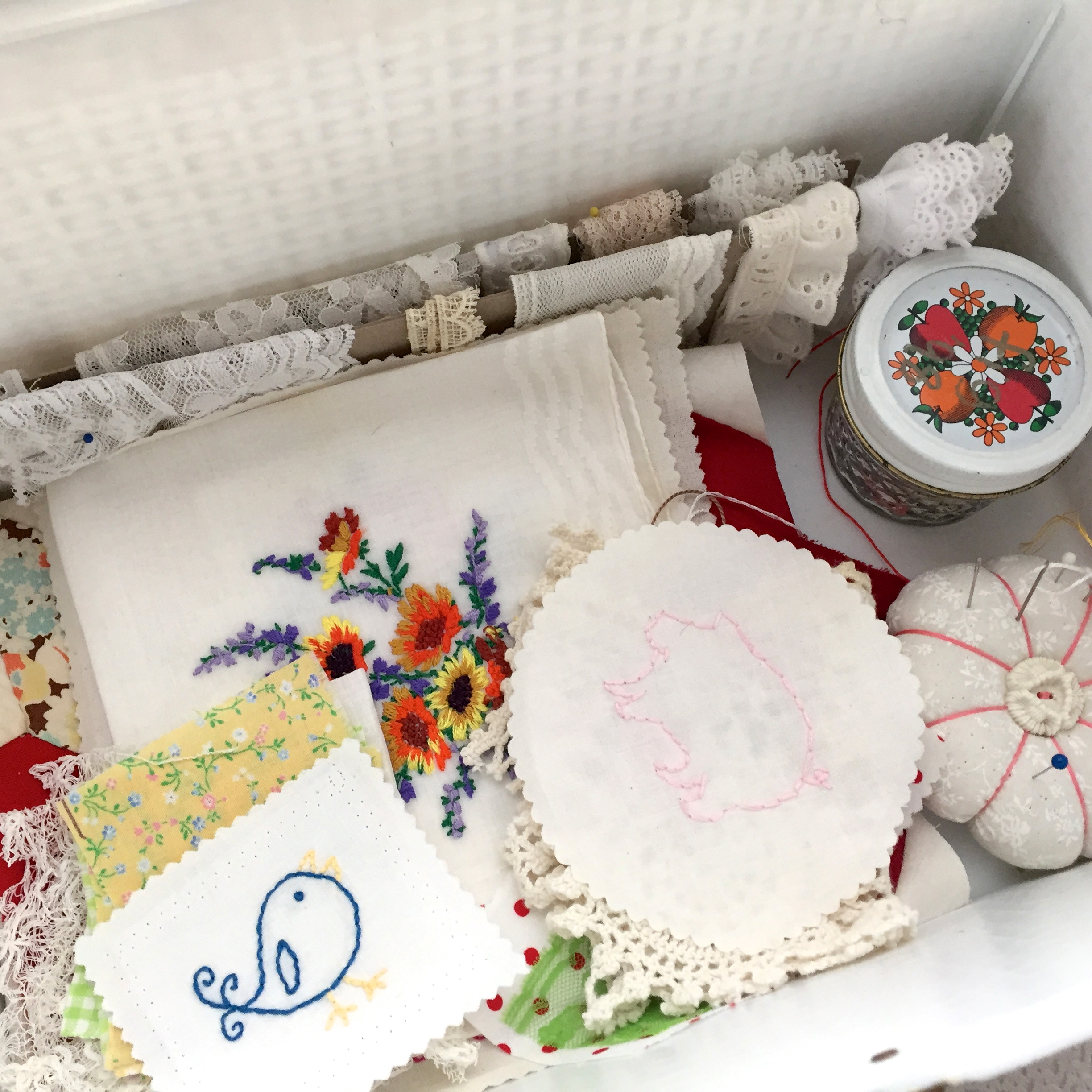 If you have been following my blog for a while, you know that I have a slight obsession with ‘Wilhold’ containers. Although this isn’t actually a Wilhold, it’s from the same era…and it was a dollar. I love these vintage plastic containers to hold my craft supplies. The memory that goes along with this is spending the day hanging out with my daughter, something we didn’t have a lot of time for even when we lived in the same town, sigh!