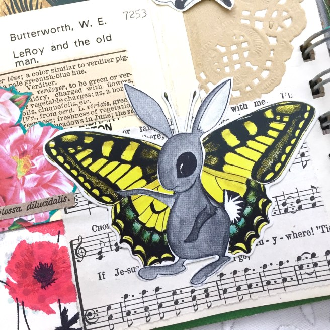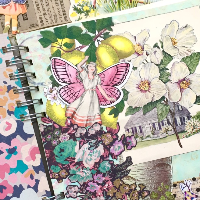 This one turned out a little closer to my liking. I think it may be the Travelers Notebook size of this journal that throws me off sometimes, luckily I have quite a collection of ‘long thin’ images in my stash, so I’m good there. You can see a “short” of this page spread here: Eclectic Art Journals
