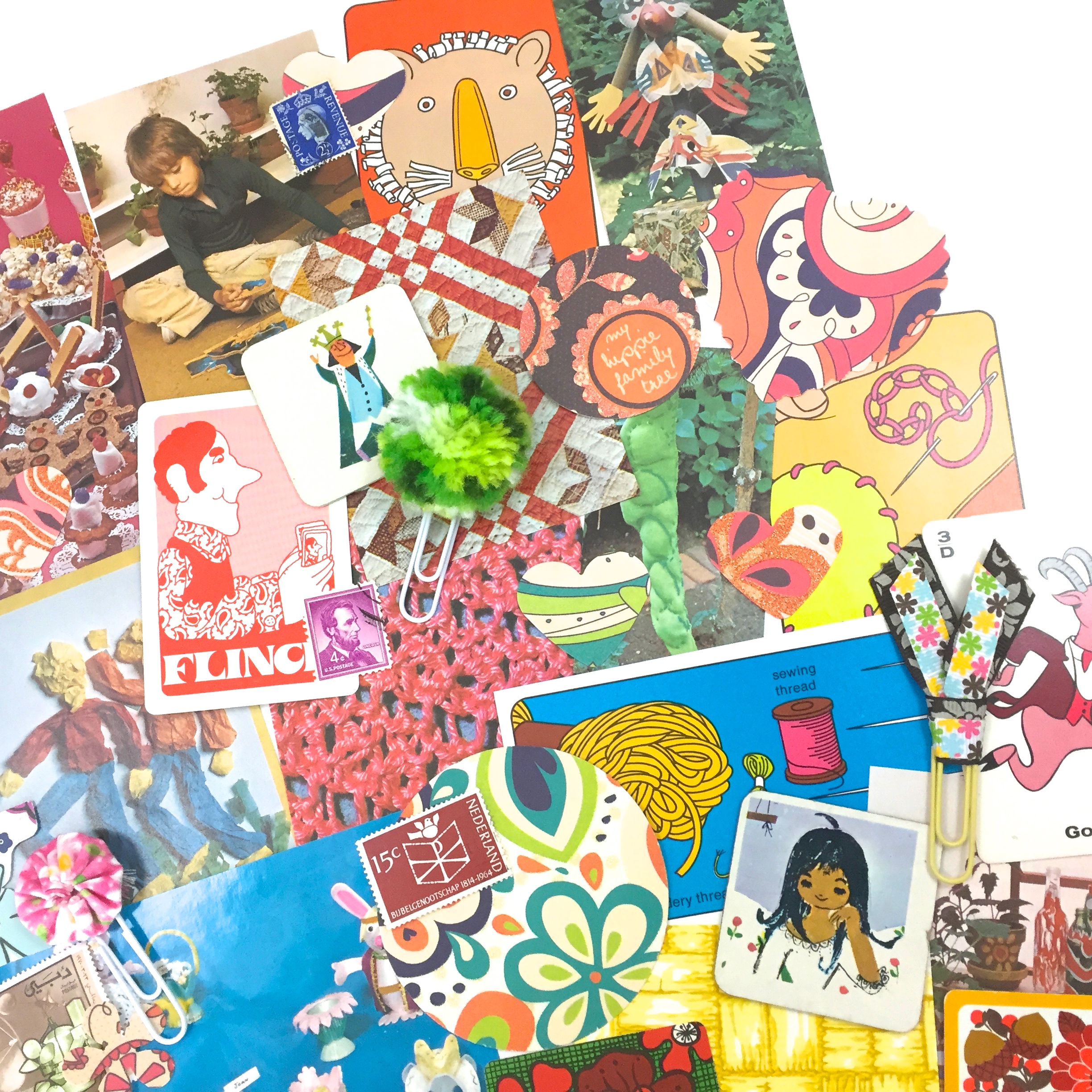 Filled with all manner of kitschy goodness, cards, game pieces, images, postage stamps, the usual suspects.