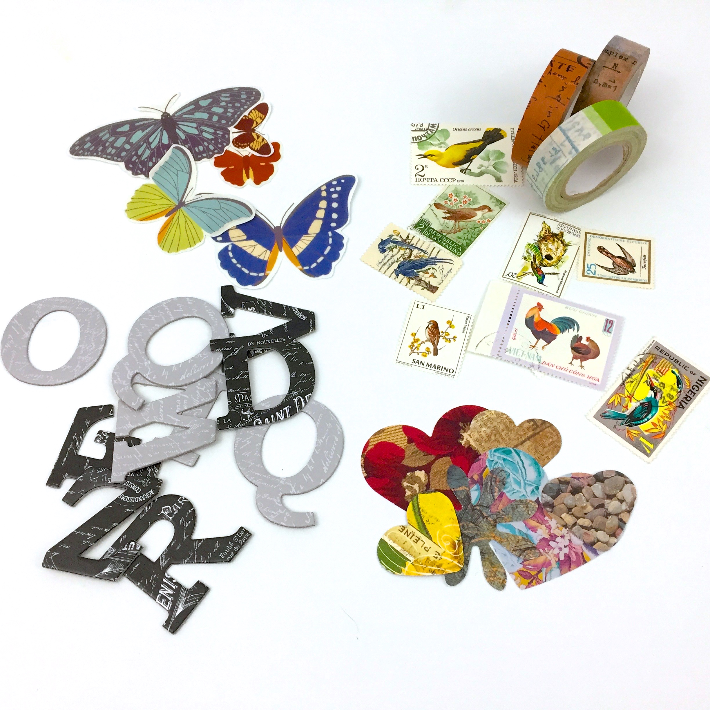 I came across a container with loads of quote cards and such that I’ve been poking around from place to place hoping for inspiration. Nice to finally find a fun project to use them in…on, whatever. These beautiful butterflies are from one of my newest favorite Etsy shops: TheJunkJournalStudio
