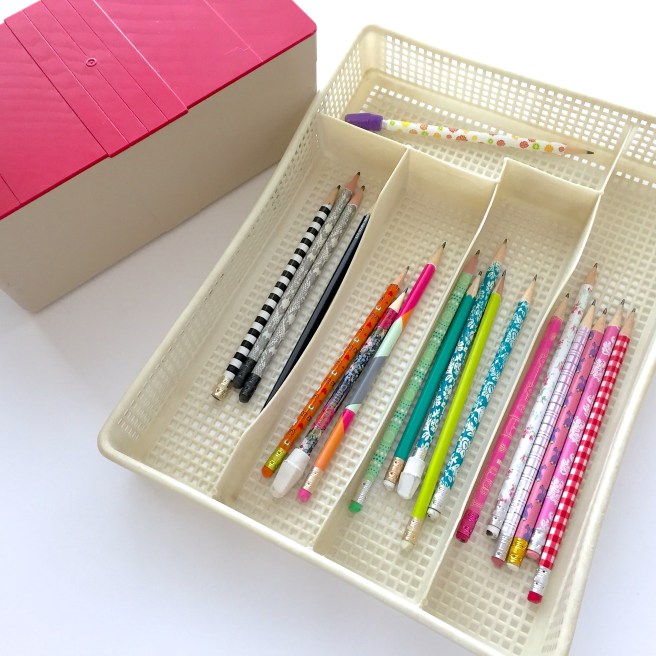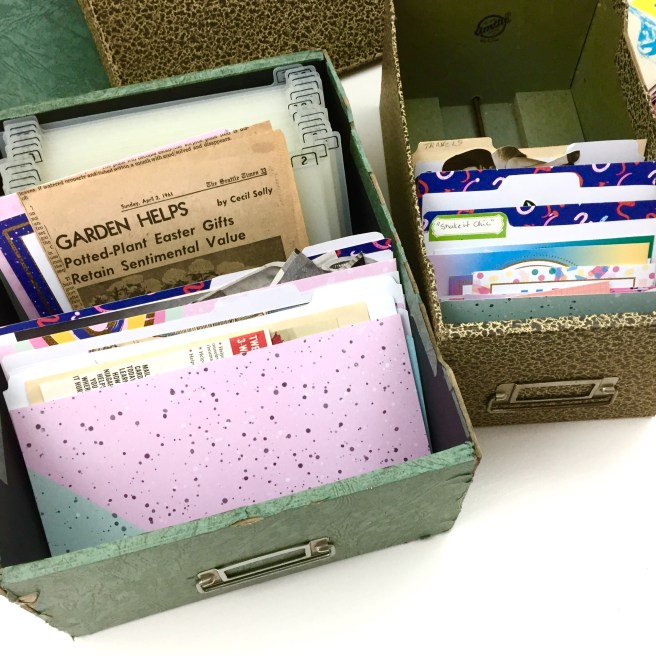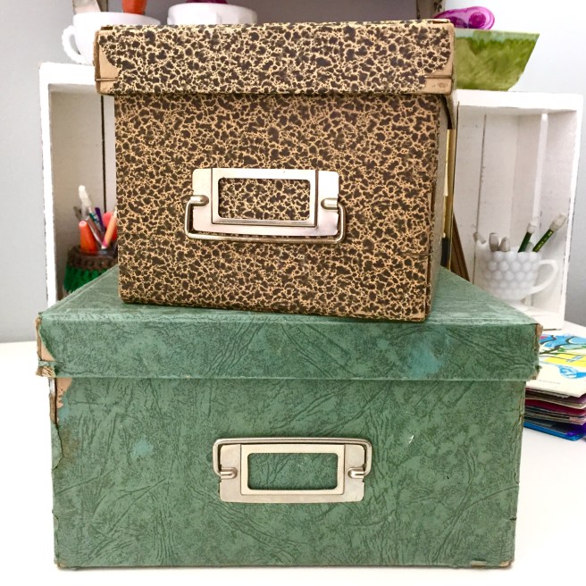 Although I’ve managed to be very strategic with my purchases, the problem with organization reared it’s inconvenient head. These are some filing boxes I picked up at the local thrift store I thought might work.