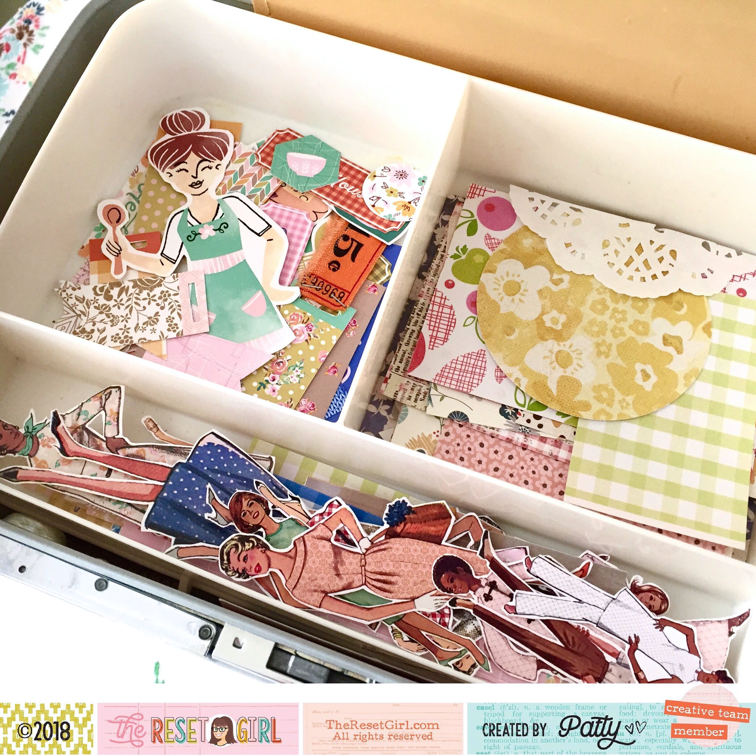 I made little file folders out of cardstock. The larger files hold vintage ephemera and the smaller ones hold store bought ephemera. I haven’t committed to labling them yet, I’m not sure I’ll need to…I just really needed to clean off my desk!